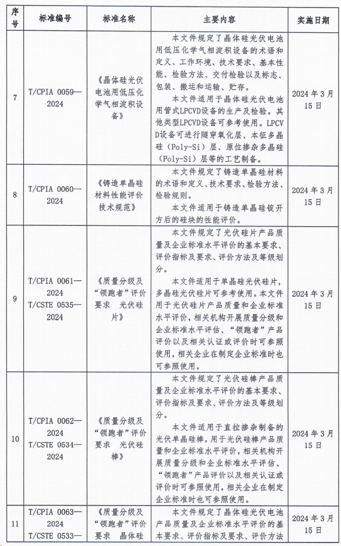 T/CPIA0061—2024T/CSTE0535—2024《質量分級及“領跑者”評價要求光伏硅片》