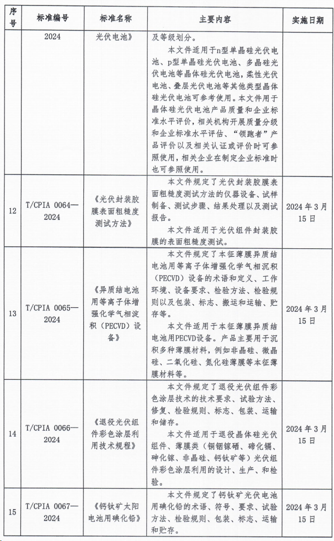 中國光伏行業協會批準發布16項中國光伏行業協會標準,其標準編號和標準名稱如下: