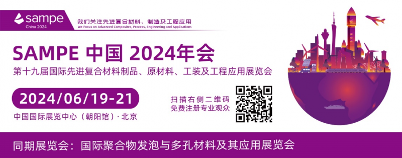 “SAMPE 中國 2024年會暨第十九屆國際先進復(fù)合材料制品、原材料、工裝及工程應(yīng)用展覽會及相關(guān)同期活動”將于 2024年6月19日-21日在中國國際展覽中心(朝陽館)舉辦。