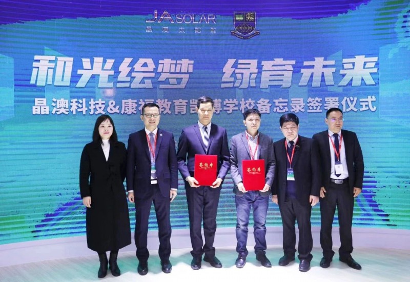 展會(huì)期間,晶澳科技與康福國際學(xué)校凱博學(xué)校簽訂備忘錄,標(biāo)志著晶澳科技產(chǎn)學(xué)結(jié)合戰(zhàn)略再獲新突破,將進(jìn)一步推動(dòng)雙方深度交流與融合,為清潔能源行業(yè)的可持續(xù)發(fā)展注入新的活力。