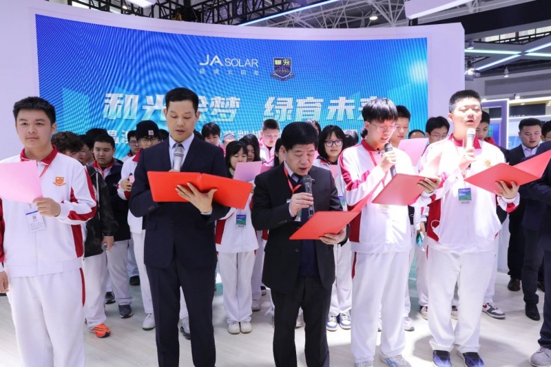 在簽訂備忘錄后,來自晶澳科技與康福國際學(xué)校凱博學(xué)校的代表共同誦讀了《全球綠色工商低碳發(fā)展倡議書》,以鏗鏘有力的聲音向全社會(huì)傳遞出雙方對清潔能源和可持續(xù)發(fā)展的堅(jiān)定信念。