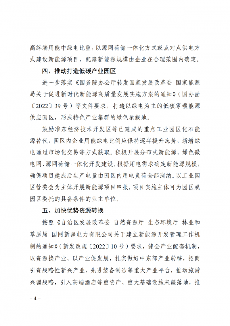 四、推動打造低碳產業園區,根據用電需求確定新能源規模,確保項目建成后生產電量由園區內用電負荷全部消納。