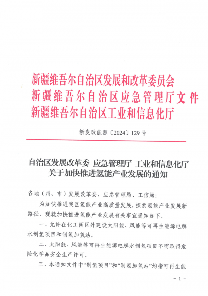 一、推動氫能產業加快發展,按年產1萬噸氫支持30—45萬千瓦市場化并網光伏或相當規模風電。