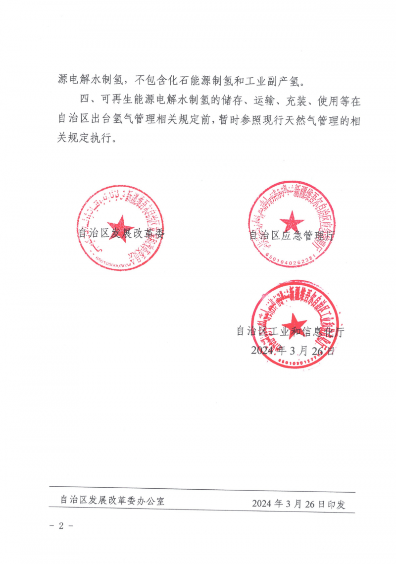 支持國家碳達峰試點城市(園區)、國家減污降碳協同創新試點城市(園區)以及自治區氫能產業示范區項目,對產業鏈完整、應用場景明確、以源網荷儲一體化或點對點供電方式建設新能源項目,達到《水電解制氫系統能效限定值及能效等級》(GB32311)要求,根據制氫需用電量確定新能源規模。符合條件的綠氫項目納入自治區氫能示范項目清單,與新能源項目一體備案。2024年12月底前建成投產或2024年內備案并于一年內建成投產的項目。