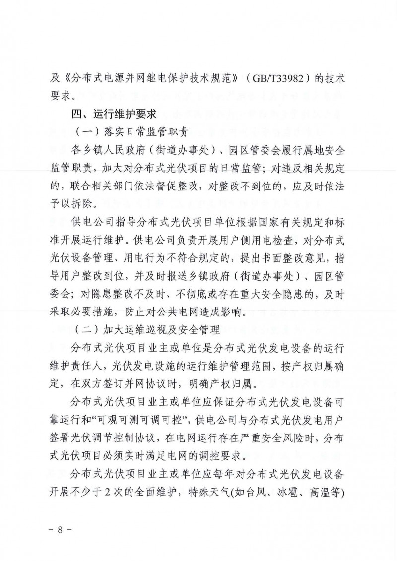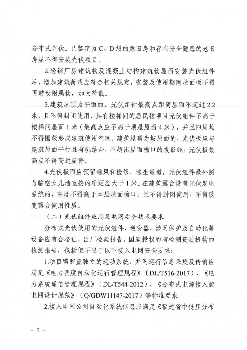 此外,文件還規定面臨拆遷、廢棄廠房或房屋、高層樓宇等建筑屋頂不宜安裝分布式光伏。已鑒定為C、D級的危舊房和存在安全隱患的老舊房屋不得安裝光伏項目。