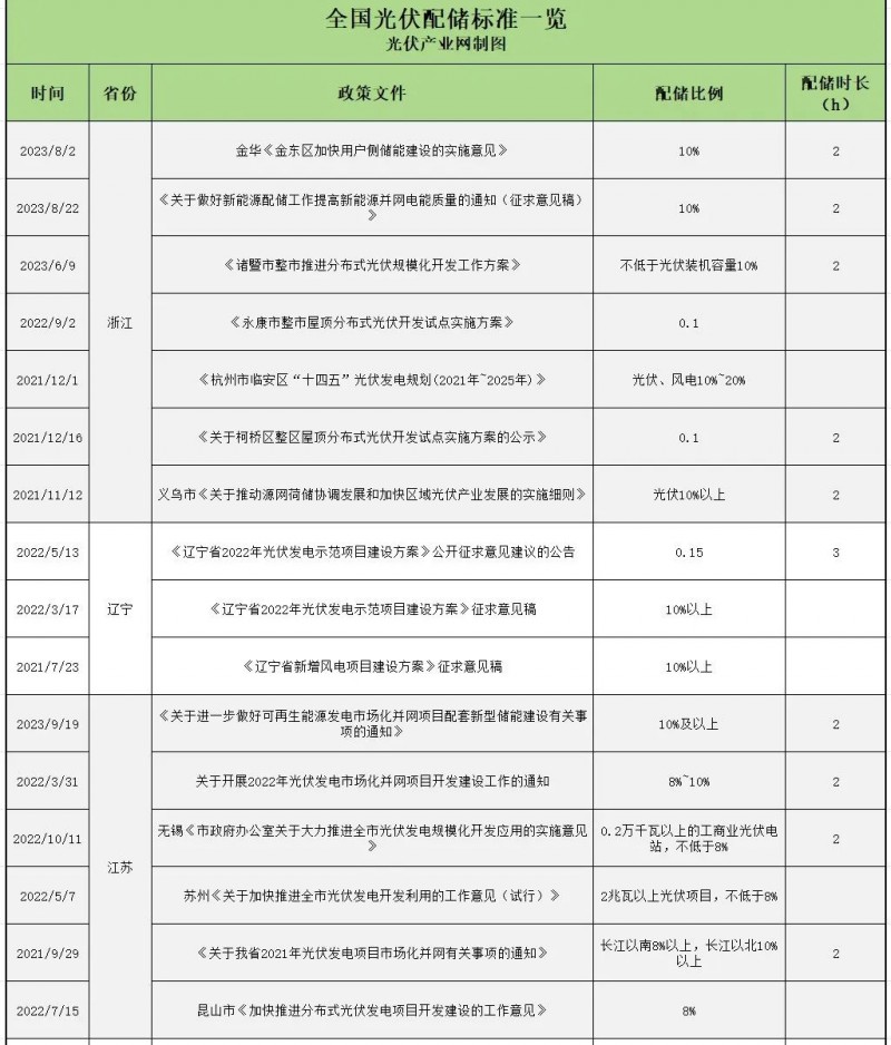 正因如此,近兩年光伏配儲逐漸從最初的鼓勵引導發展為并網標配,最后到不建受罰,比例也從原來10%逐步上升至不低于15%-30%,連續儲能時長也從原來的1-2小時抬升至3-4小時,呈現逐步走高態勢。