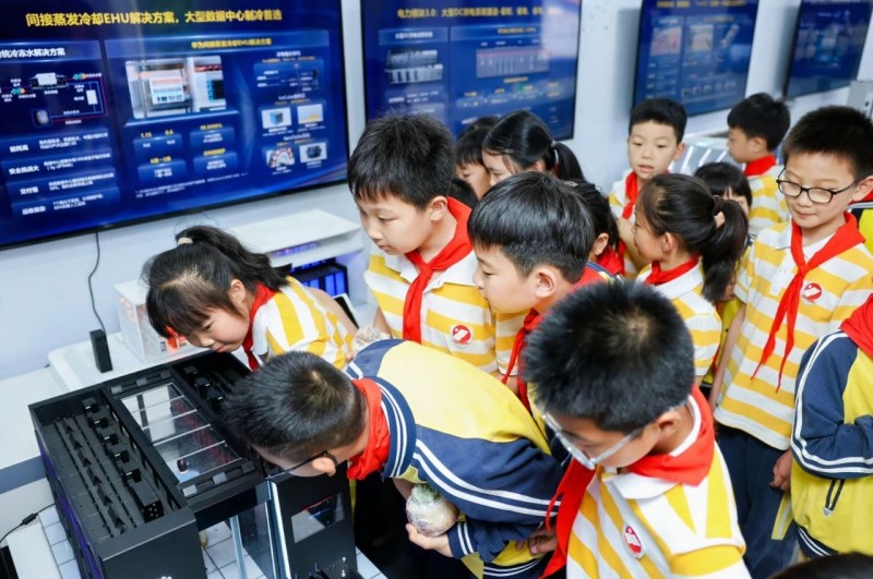 啟動儀式后,華為展車迎來了首批“碳路小先鋒”,在講解員的悉心帶領下依次參觀了光儲、充電、以及數據中心三大展區,展示了華為智能光伏樣板點、逆變器、“一秒一公里”華為超充等核心產品。同學們對華為數字能源展車中陳列的設備和沙盤模型充滿了好奇心,探著小腦袋仔細地觀察,表現地十分積極。