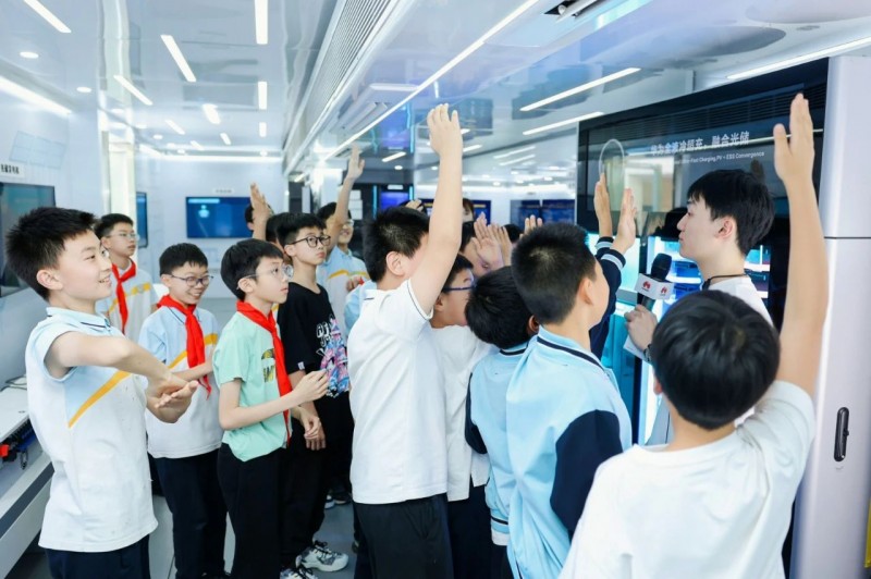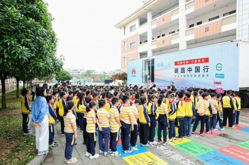 華為“碳路中國行”展車全長18米,展示面積約65平方米,在巡展車內,匯聚了華為智能光伏領域最前沿的科技成果,集中展示了清潔發電、充電網絡、綠色數據中心等全場景解決方案。此次通過公益巡展的方式,帶領同學們一起走進綠色能源大世界,用一堂課埋下一粒種。