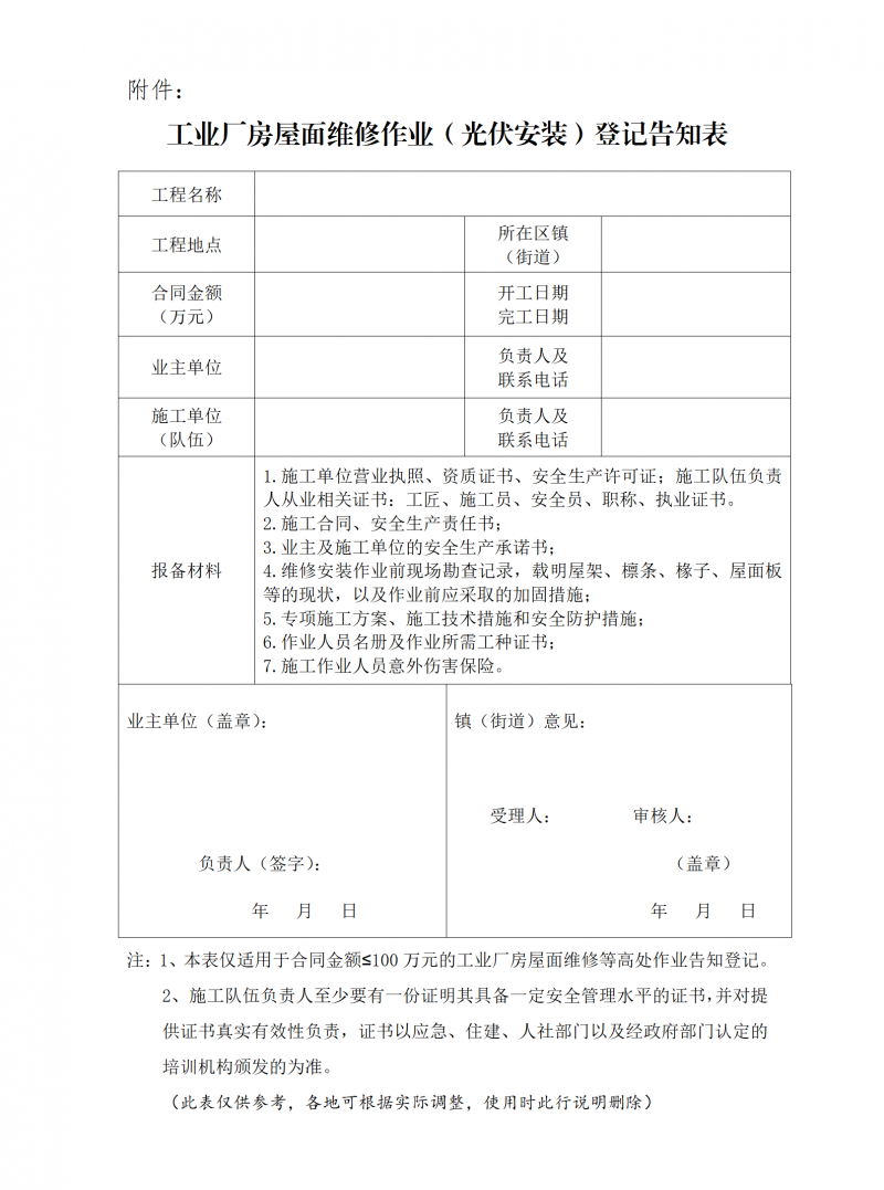 附件:工業廠房屋面維修作業(光伏安裝)登記告知表