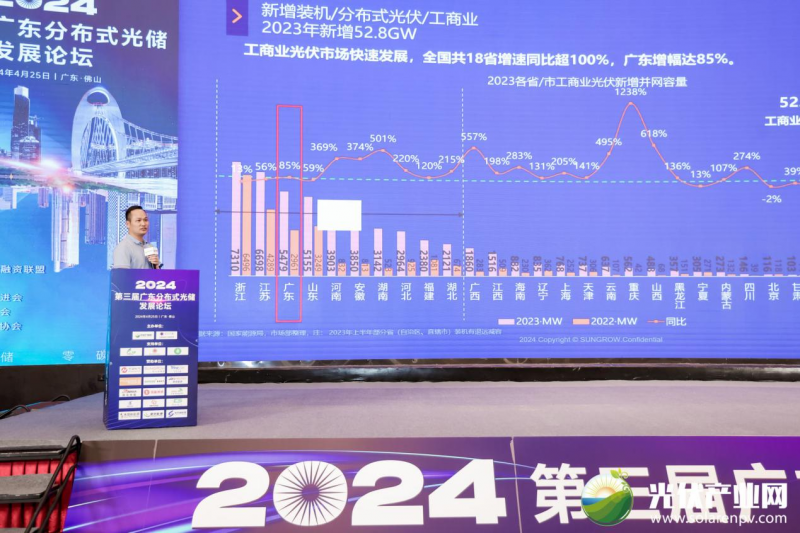 “作為經濟發達省份,廣東光照豐富,制造業發達,電力消納能力強,具有發展分布式的產業環境和屋頂資源。”廣東省低碳發展促進會副秘書長成貝貝在致辭中提到,作為全國分布式光伏的重要市場,廣東分布式市場潛力將超170GW。目前,幾乎所有分布式光伏品牌都在積極布局廣東市場。2024年廣東將繼續會是全國光伏應用的重要市場、分布式光伏開發的熱土!