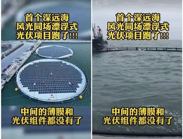 此外,技術問題也是一大挑戰。去年4月,一則“首個深遠海風光同場漂浮式光伏項目跑路”的視頻流傳網絡,在業內引發關注。在網傳視頻中,電站組件和薄膜均已消失不見。經過確認,該項目為國家電投山東半島南3號海上風電場20兆瓦深遠海漂浮式光伏500千瓦實證項目,位于山東省海陽市南側海域。專家表示,基于該項目的技術方案,失散的光伏組件和薄膜大概率不是“飄走了”,而是“沉底了”,推測可能為波浪條件、機械設備問題引發項目事故。