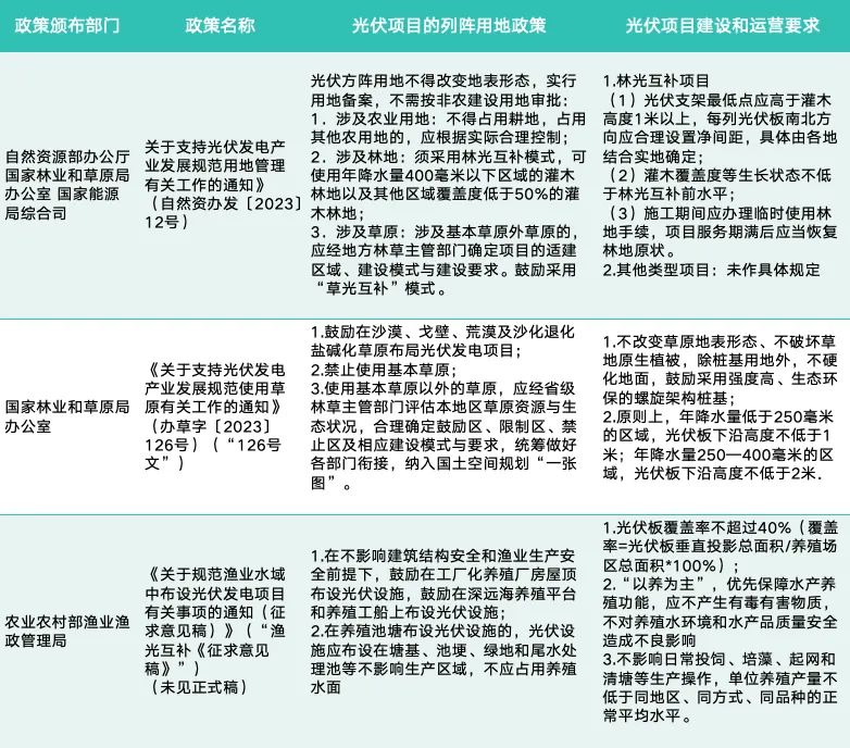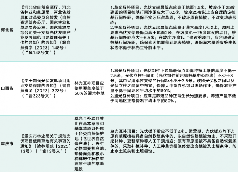 2023年3月20日,自然資源部辦公廳、國家林業和草原局辦公室、國家能源局綜合司印發了《關于支持光伏發電產業發展規范用地管理有關工作的通知》(自然資辦發〔2023〕12號,簡稱“12號文”),明確復合光伏項目光伏方陣用地不得改變地表形態,并對光伏方陣用地的土地類型提出了新的要求,同時也要求復合光伏項目應按照各地結合實地確定的建設和運營標準執行。