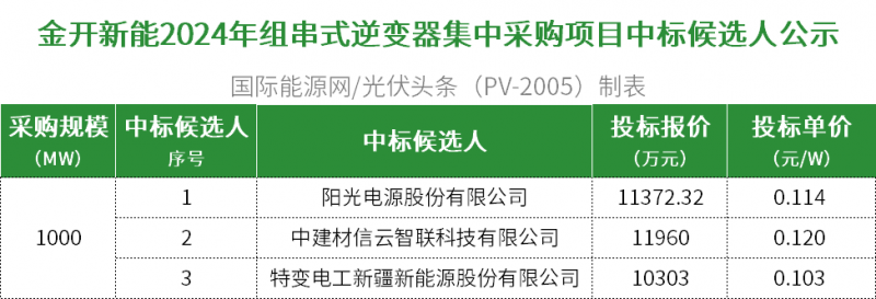 陽光電源、中建材、特變預中標金開新能1GW組串式逆變器集采項目!