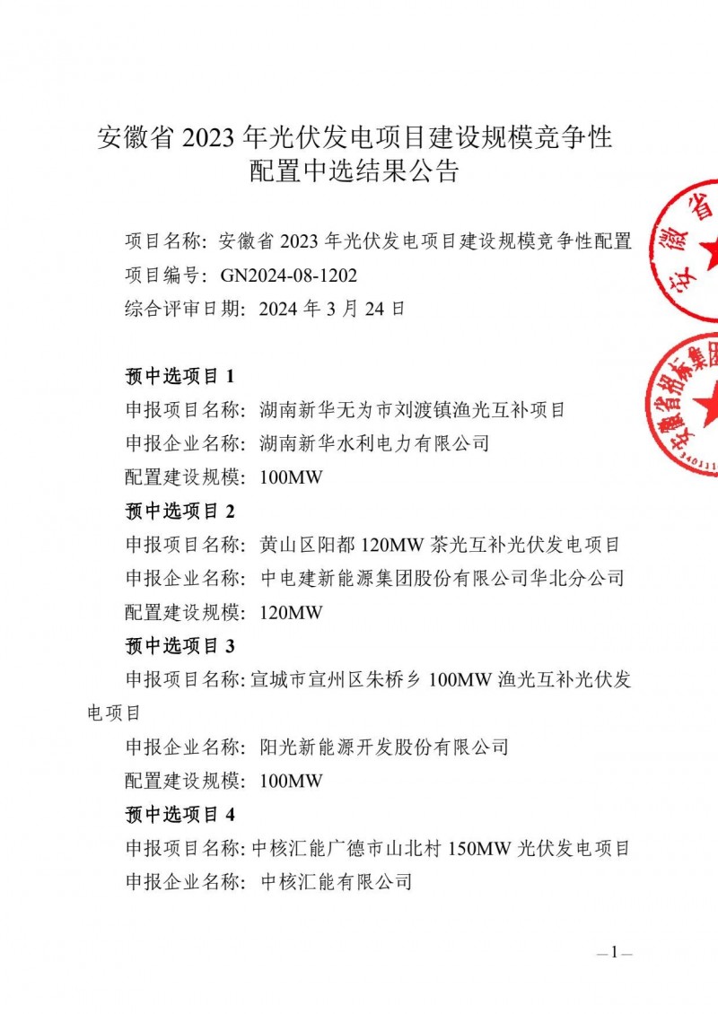 近日,安徽省能源局發(fā)布了2023年光伏發(fā)電項目建設規(guī)模競爭性配置中選結果公告。
