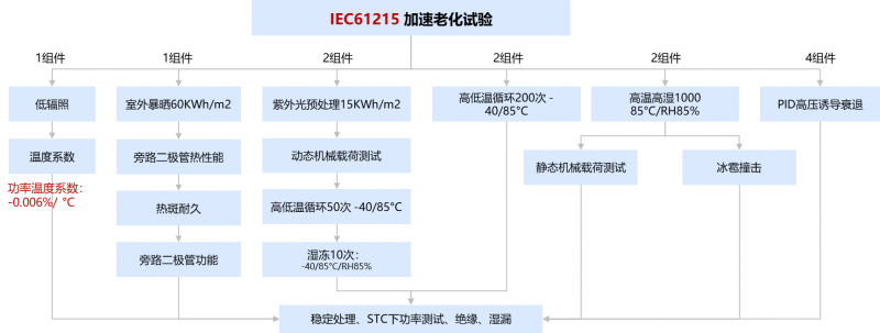 經(jīng)104kWh的紫外輻照,組件功率衰減僅為4.79%。上述兩項(xiàng)光熱聯(lián)合老化以及紫外老化測試結(jié)果表明,極電光能鈣鈦礦組件產(chǎn)品可耐受高溫、高濕等苛刻環(huán)境條件,并且在戶外光、熱綜合環(huán)境作用下,同樣具有優(yōu)異的長期穩(wěn)定性及可靠性。