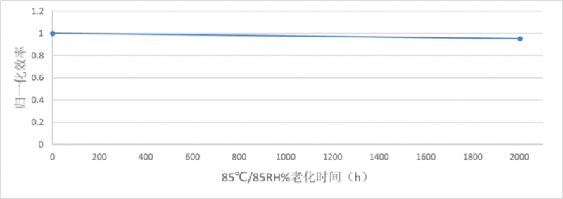 極電光能鈣鈦礦組件85℃/85RH%高溫高濕老化2004h衰減4.74%