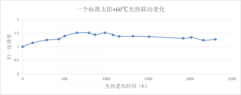 極電光能鈣鈦礦組件在一個(gè)標(biāo)準(zhǔn)太陽及60℃聯(lián)動(dòng)老化2304h無衰減
