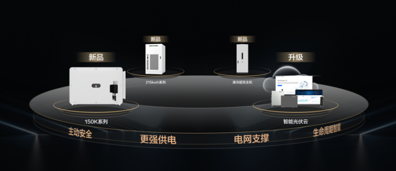 此次重點推出了150K更大功率工商業逆變器、行業首款風液智冷工商業儲能、360kW/480kW液冷超充主機、全新升級的智能光伏云等。