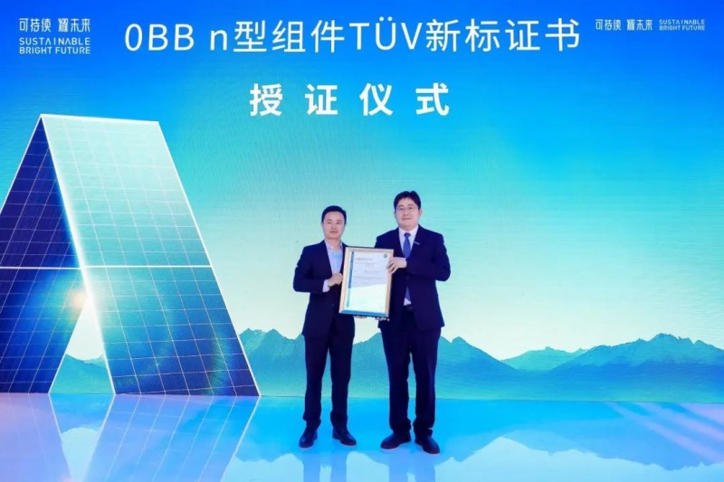 發布會現場,德國萊茵TÜV大中華區太陽能與商業產品服務光伏組件副總經理馮軼洲為晶澳科技頒發了“0BB電池認證證書”;TÜV南德新能源可靠性與標準化研究院院長張祝林為晶澳科技頒發了“0BBn型組件TÜV新標證書”,有力證明了這一解決方案的實力。