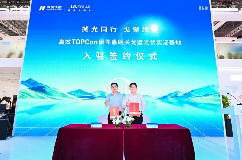 在此背景下,本次展會晶澳科技再與中國華能集團清潔能源技術研究院有限公司簽約,宣布旗下高效TOPCon產品入駐華能嘉峪關戈壁光伏實證基地。這意味著晶澳科技高效組件產品將再次接受極限挑戰,在高溫、強風和沙塵的嚴苛環境下,以科學的方式讓市場直觀認識到晶澳科技“為客戶價值而生”的產品設計理念。