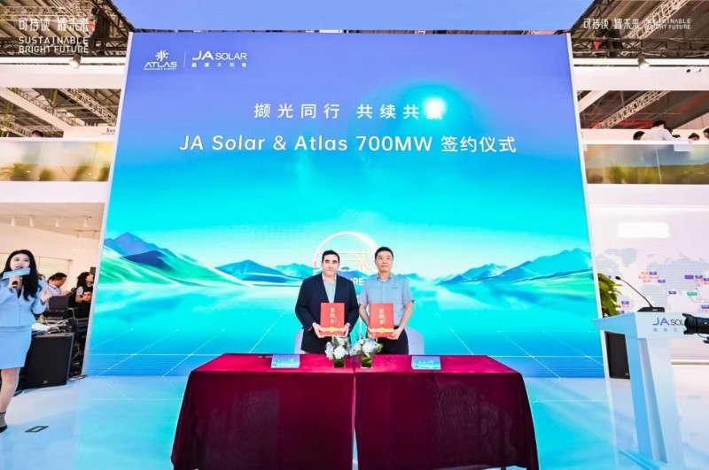 首先,拉丁美洲最大的太陽能開發商和投資者之一Atlas與晶澳科技簽署了總規模達700MW的組件供貨協議,其中包括供貨200MW組件的協議,以及圍繞項目的500MW戰略合作框架協議。Atlas采購主管Patrick Valentin 與晶澳科技副總裁、全球營銷中心總經理祝道誠分別代表雙方簽字。