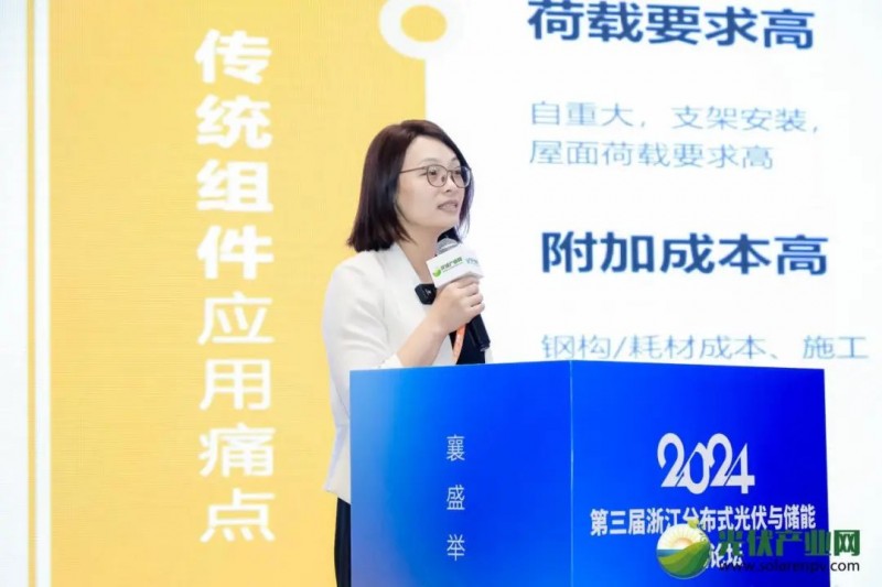 針對(duì)工業(yè)廠房屋頂安裝光伏存在的組件鋪設(shè)率低、邊框積灰降低發(fā)電量、屋面壽命低及與光伏不匹配、屋面抗風(fēng)性差等問題,陽光新能源解決方案專家吳國(guó)歐帶來了陽光頂BIPV解決方案,實(shí)際使用中,該產(chǎn)品不僅能將組件降溫10℃以上,同時(shí)還能將發(fā)電量提升3%以上,相比傳統(tǒng)方案,1萬平方屋頂可以多安裝200KW光伏組件,組件鋪設(shè)率提升10%+。同時(shí),精巧研發(fā)“固定、導(dǎo)流、防雷”三合一功能,全維度提升產(chǎn)品安全性,確保企業(yè)用戶安心生產(chǎn)。