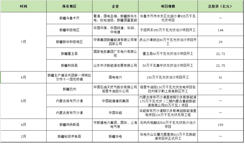 今年7月,新疆地區(qū)光伏治沙項目集中開工,據(jù)光伏產業(yè)網不完全統(tǒng)計,僅上半年開工的光伏治沙項目總規(guī)模就達到了30GW。