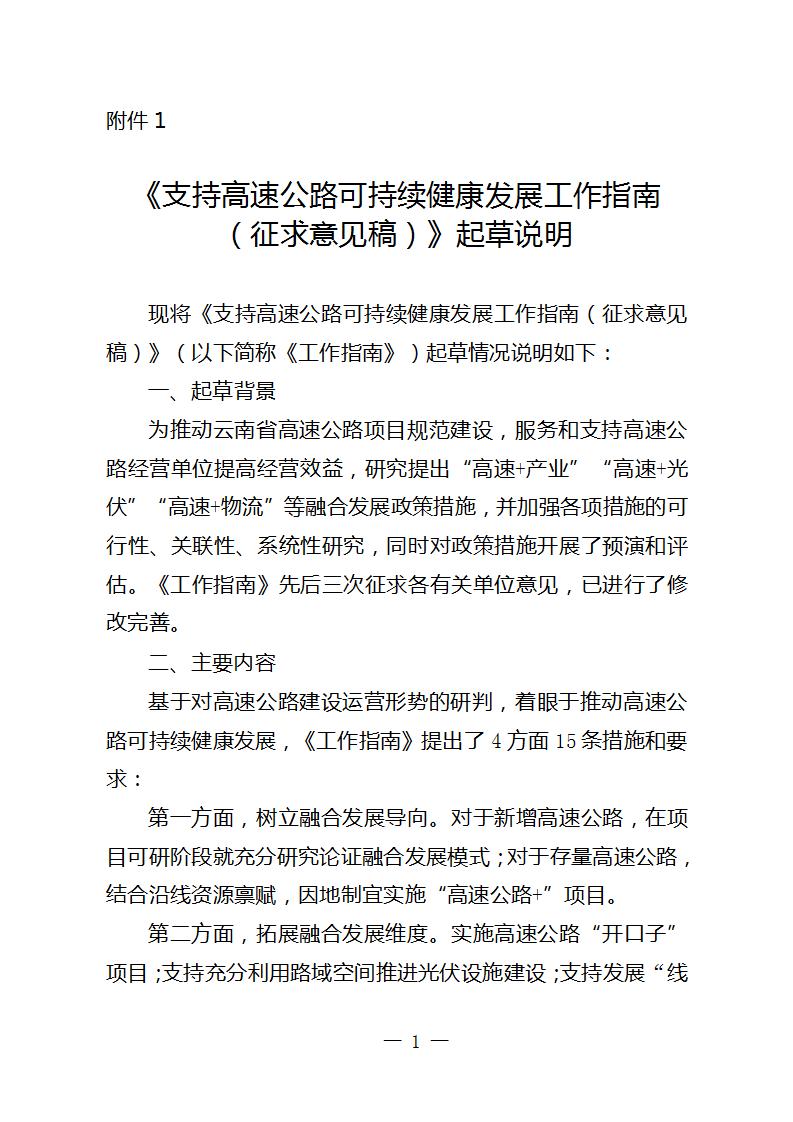 1.《支持高速公路可持續(xù)健康發(fā)展工作指南(征求意見(jiàn)稿)》起草說(shuō)明