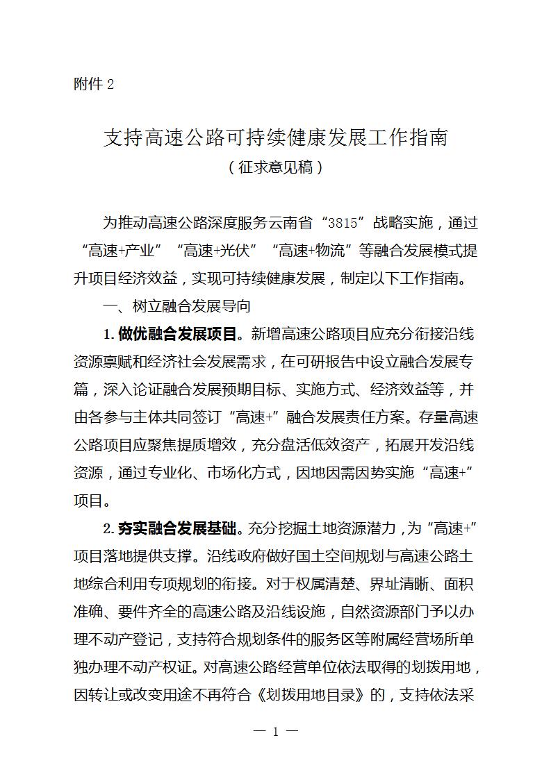 2.《支持高速公路可持續(xù)健康發(fā)展工作指南(征求意見(jiàn)稿)》