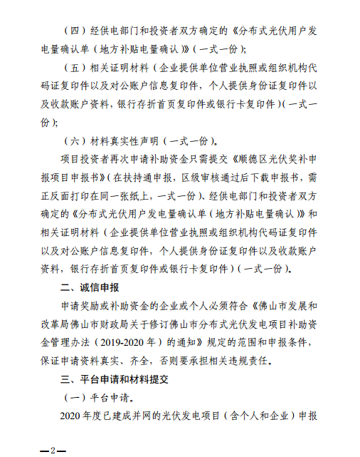 廣東佛山順德區(qū)光伏項目獎勵和補助資金申報啟動