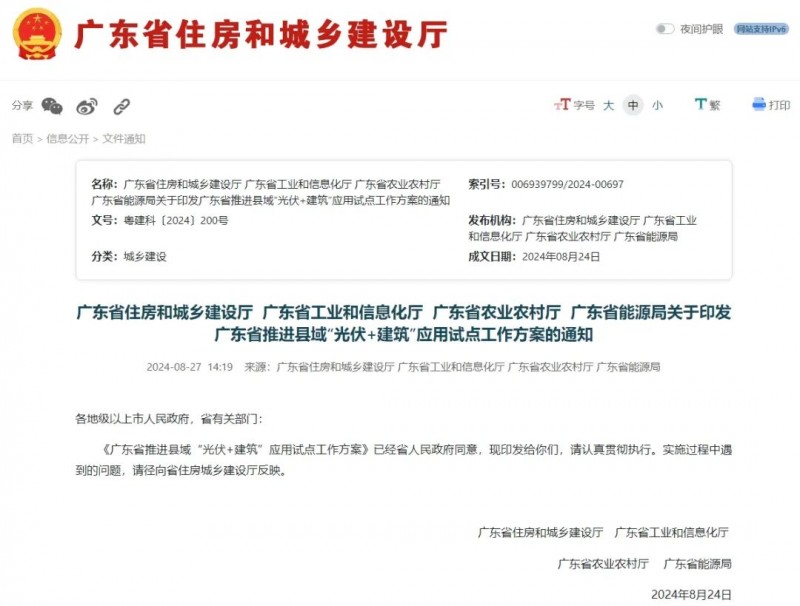 省住房城鄉建設廳:統籌全省“光伏+建筑”應用試點工作,完善“光伏+建筑”領域建筑技術標準,會同相關部門加強“光伏+建筑”項目的風貌監督管理。