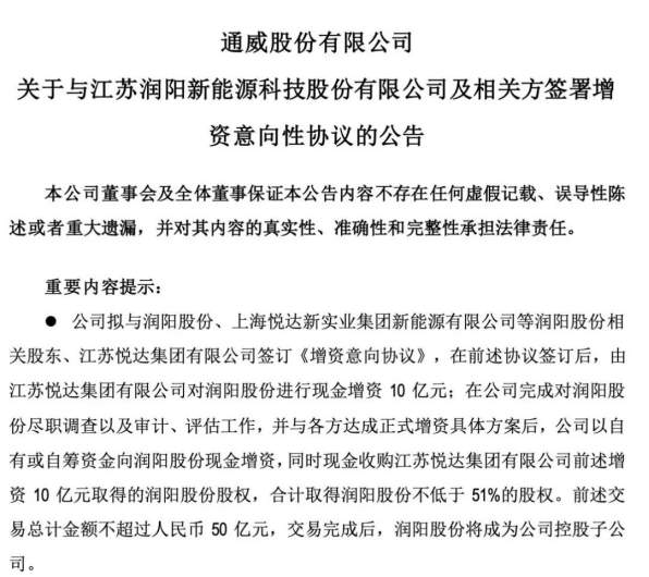 但光伏業龍頭通威股份以50億元“搶先一步”收購潤陽51%的股份,創下中國光伏史上并購金額紀錄。今年8月中旬,通威股份公告了這一交易。