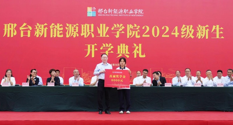 靳保芳董事長為晶澳“真誠”獎學(xué)金獲得者頒獎(入學(xué)成績最高分學(xué)生)