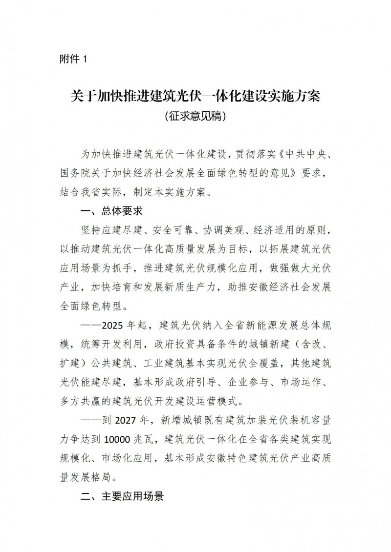 附件:1.關于加快推進建筑光伏一體化建設實施方案(征求意見稿)