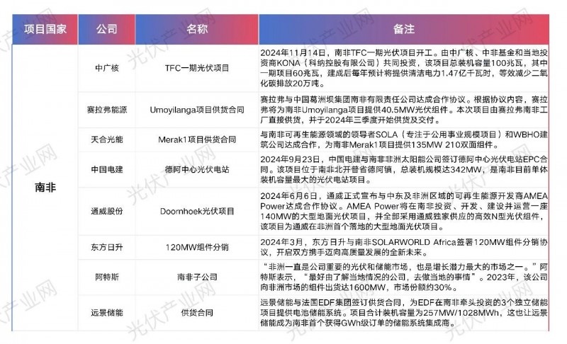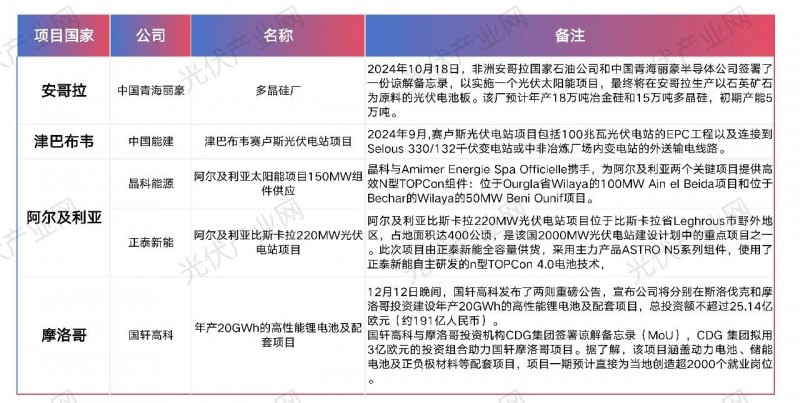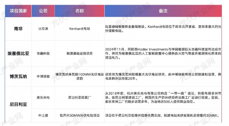 中國企業在非洲光儲布局(不完全統計)