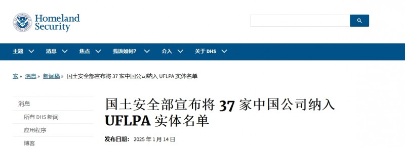 根據UFLPA的規定,2025年1月15日起,美國海關與邊境保護局(CBP)將對這37家實體生產的商品實施可反駁的推定,禁止其進入美國。