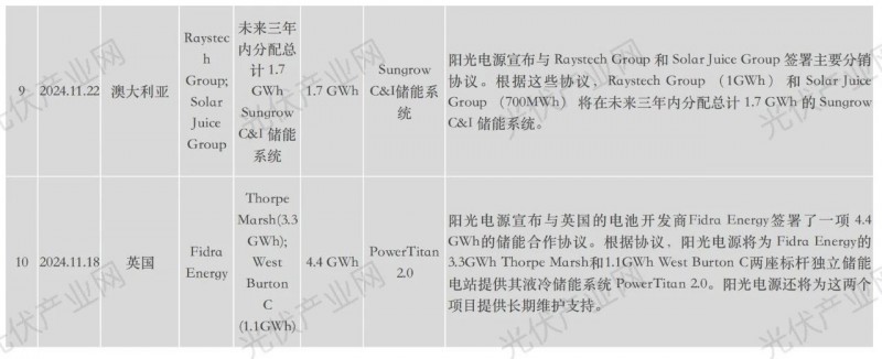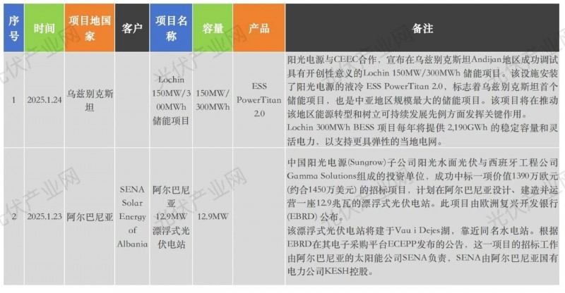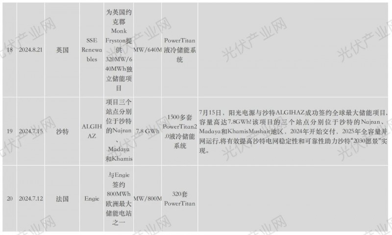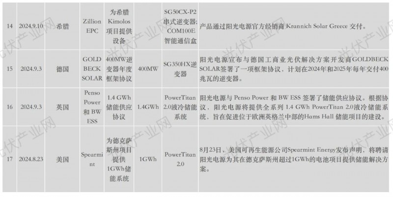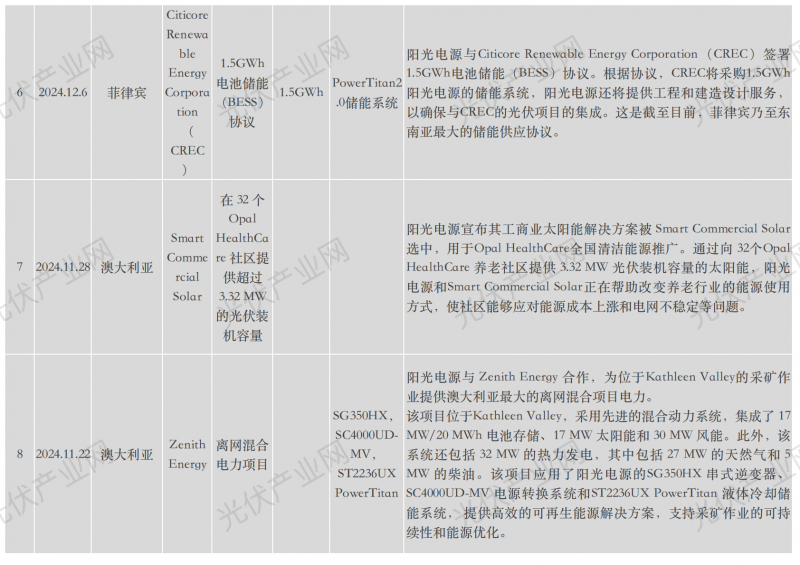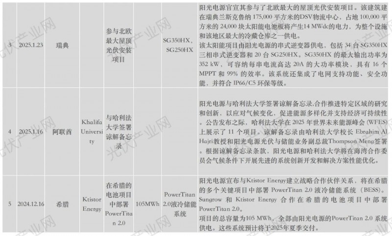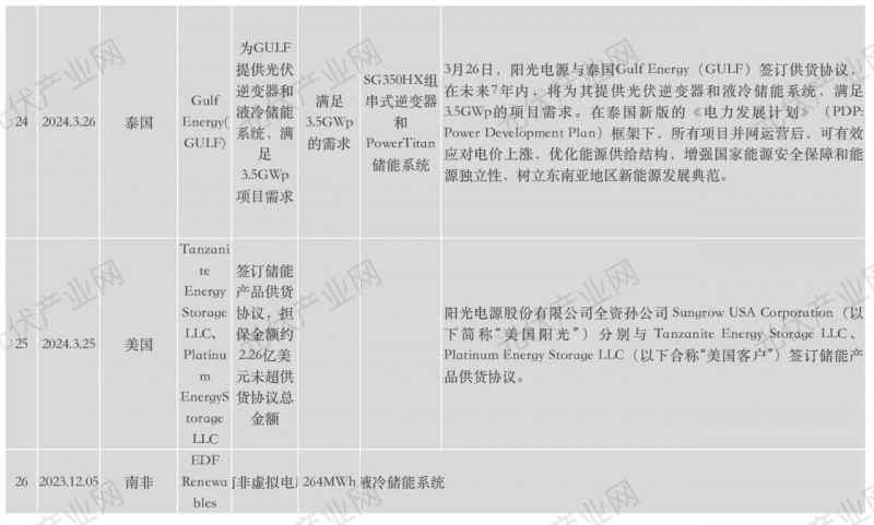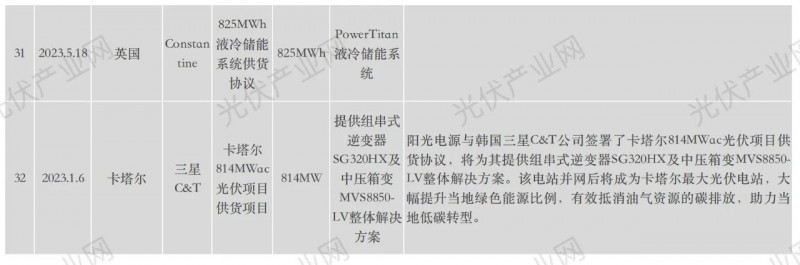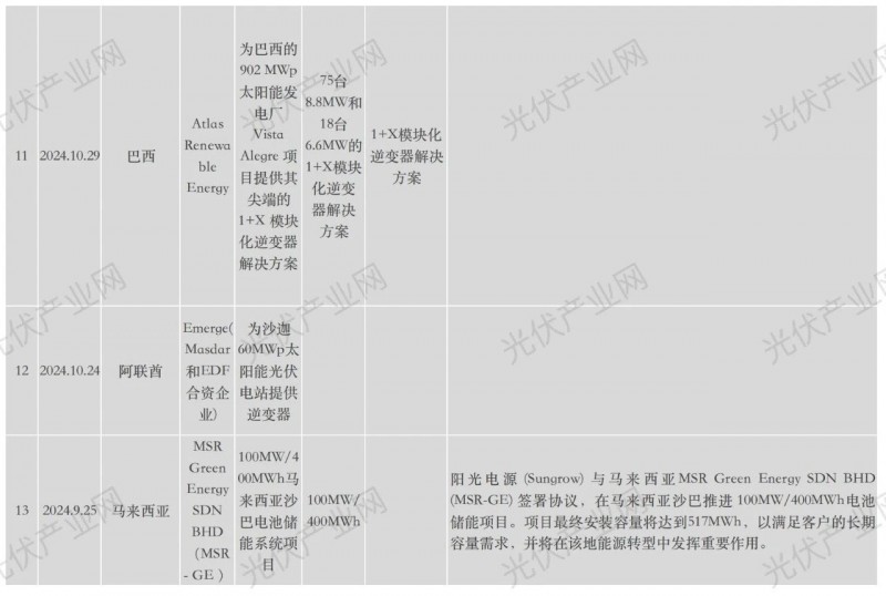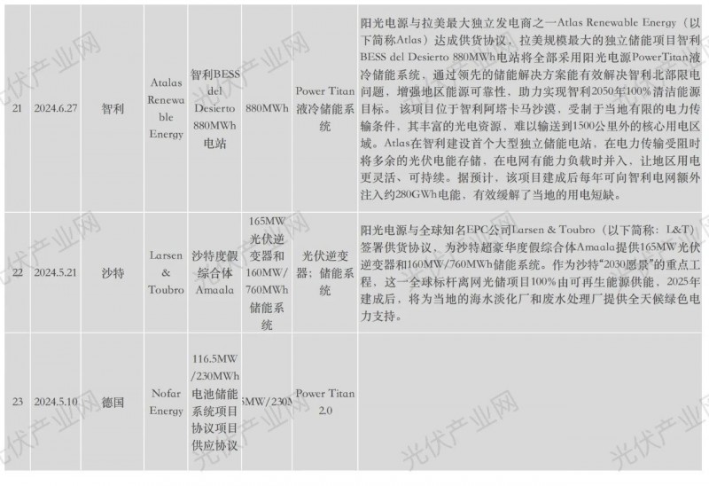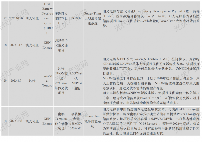 陽光電源近年海外具體項目詳表: