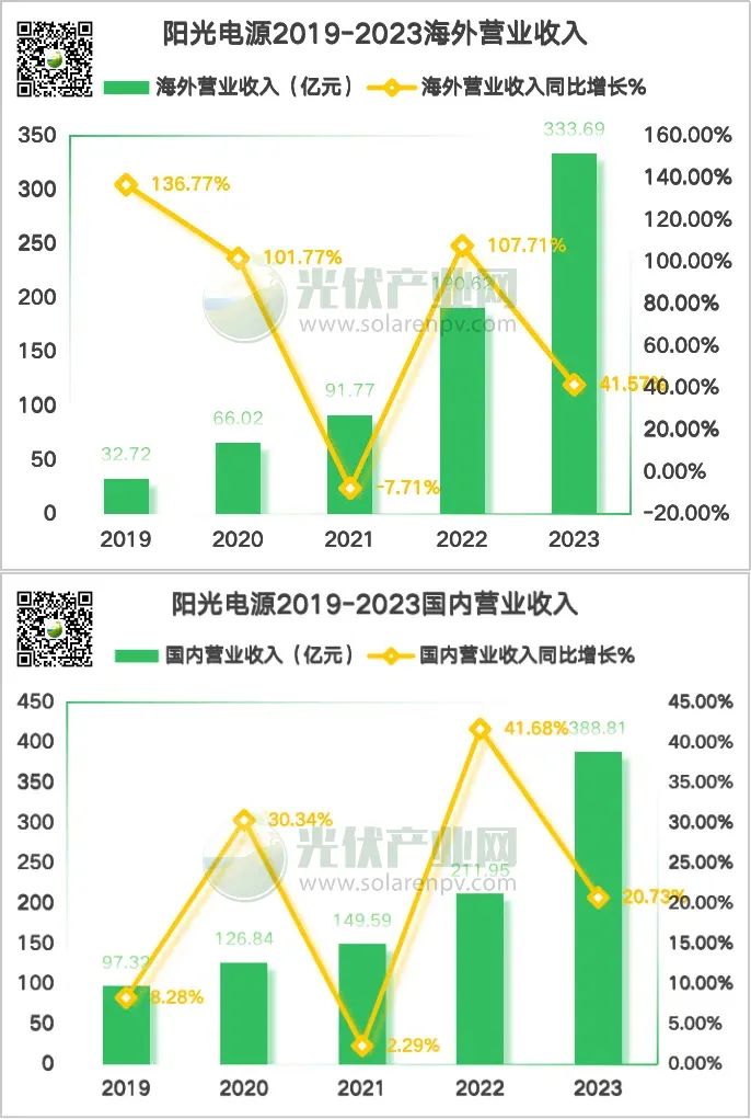此次在德國法蘭克福證券交易所上市是陽光電源海外擴張的又一大步!從陽光電源的發(fā)展歷程來看,針對海外市場布局從未停步。公司海外員工從2022年的900人提升至2023年的1423人,增長了58.1%。2024年上半年,陽光電源已實現(xiàn)海外銷售收入134.76億元,占比為43.44%,海外市場已成為其重要的收入來源。