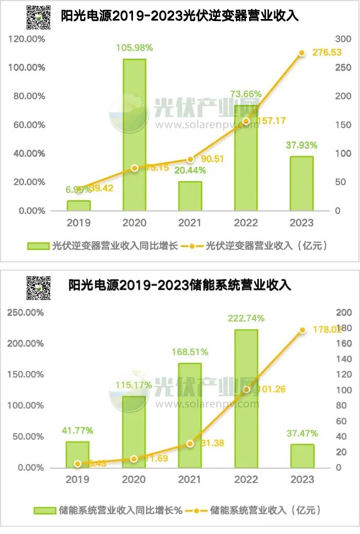 從陽光電源整體的盈利板塊來看,不管是光伏逆變器還是儲能系統(tǒng)的營業(yè)收入在行業(yè)內(nèi)部都是遙遙領(lǐng)先。