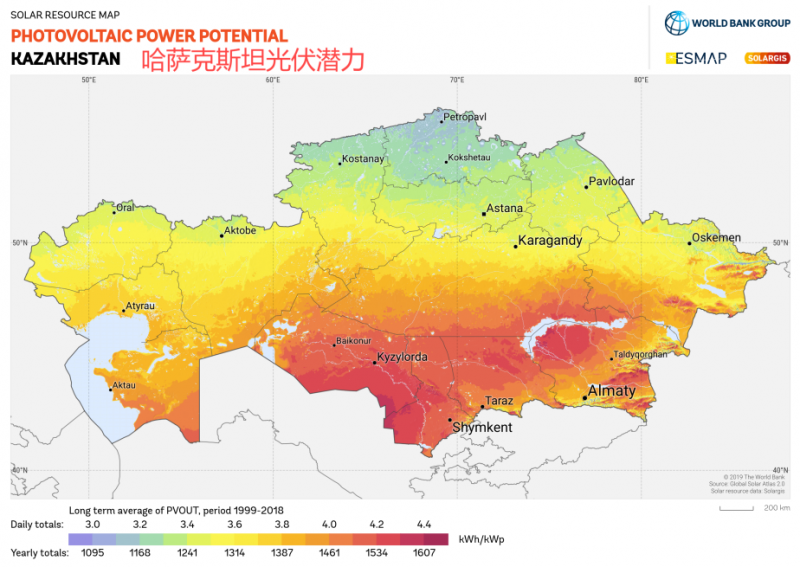 地理?xiàng)l件:作為中亞地區(qū)最大的國家,哈薩克斯坦也是該地區(qū)最大的能源生產(chǎn)國,擁有豐富的太陽能資源。尤其是南部和東南部地區(qū),如阿拉木圖(Almaty)和奇姆肯特(Shymkent),年均太陽輻射量可達(dá)1500–1700kWh/m²,是全球日照最充足的地區(qū)之一。豐富的輻射量有利于光伏發(fā)電,能夠?yàn)榇笠?guī)模的光伏電站提供穩(wěn)定的電力來源。