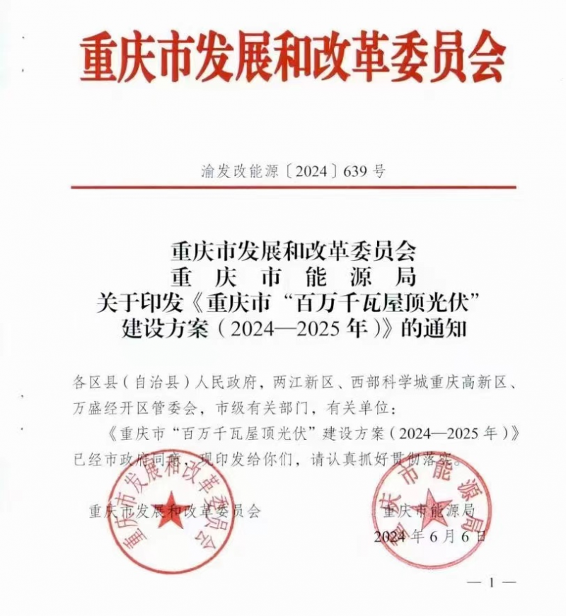 2024年6月,《重慶市“百萬千瓦屋頂光伏”建設(shè)方案(2024-2025年)》橫空出世,提出從2024年5月~2025年7月,計劃新增屋頂光伏超100萬千瓦,累計達200萬千瓦,無疑為重慶分布式光伏發(fā)展注入了一劑“強心針”。
