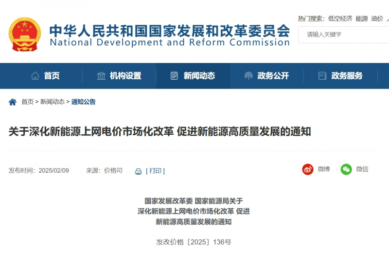 為貫徹落實(shí)黨的二十屆三中全會(huì)關(guān)于推進(jìn)能源領(lǐng)域價(jià)格改革的決策部署,充分發(fā)揮市場(chǎng)在資源配置中的決定性作用,推動(dòng)新能源行業(yè)高質(zhì)量發(fā)展,促進(jìn)能源綠色低碳轉(zhuǎn)型,近日國家發(fā)展改革委、國家能源局聯(lián)合印發(fā)《關(guān)于深化新能源上網(wǎng)電價(jià)市場(chǎng)化改革促進(jìn)新能源高質(zhì)量發(fā)展的通知》(發(fā)改價(jià)格〔2025〕136號(hào))。就此,記者采訪了國家發(fā)展改革委、國家能源局有關(guān)負(fù)責(zé)同志。