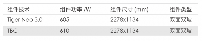 此次測試安裝使用了兩組不同類型的組件:晶科TOPCon技術TigerNeo3.0組件與其他廠商的TBC型組件,每個組串均為16塊雙面組件,對比電站安裝角度為33°,地面類型為草地,組件底部離地距離1m。希望通過測試能夠更深入地了解這兩種組件在不同典型氣候的應用表現,為客戶電站選型提供幫助。