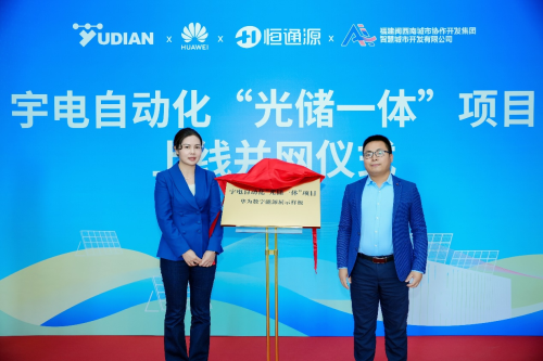 隨后,宇電“光儲一體”項目成功揭牌,這也標志著華為全國首個企業并離網儲能標桿項目順利落地宇電溫控科技產業園。