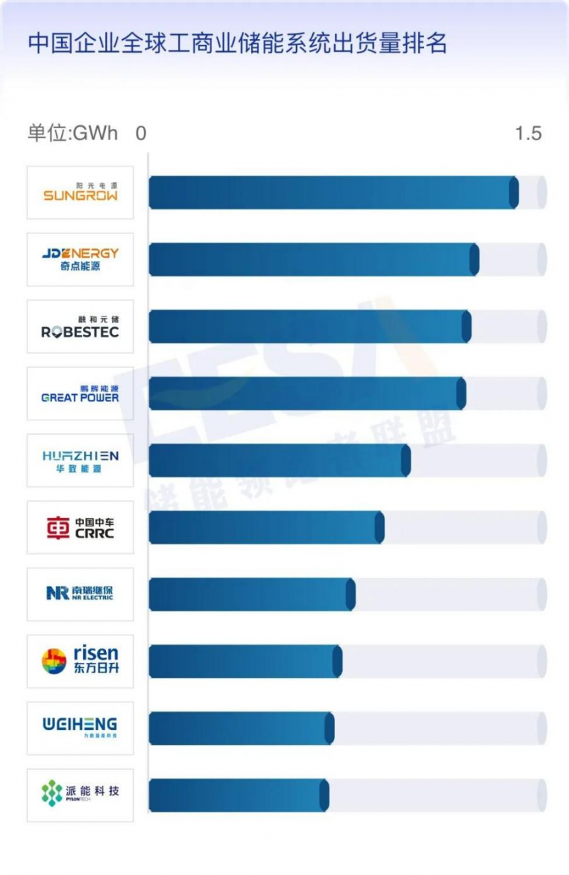 2024年度,在中國企業全球工商業儲能系統解決方案提供商中,出貨量排名前十的中國企業依次為:陽光電源、奇點能源、融和元儲、鵬輝能源、華致能源、中車株洲所、南瑞繼保、東方日升、為恒智能、派能科技。