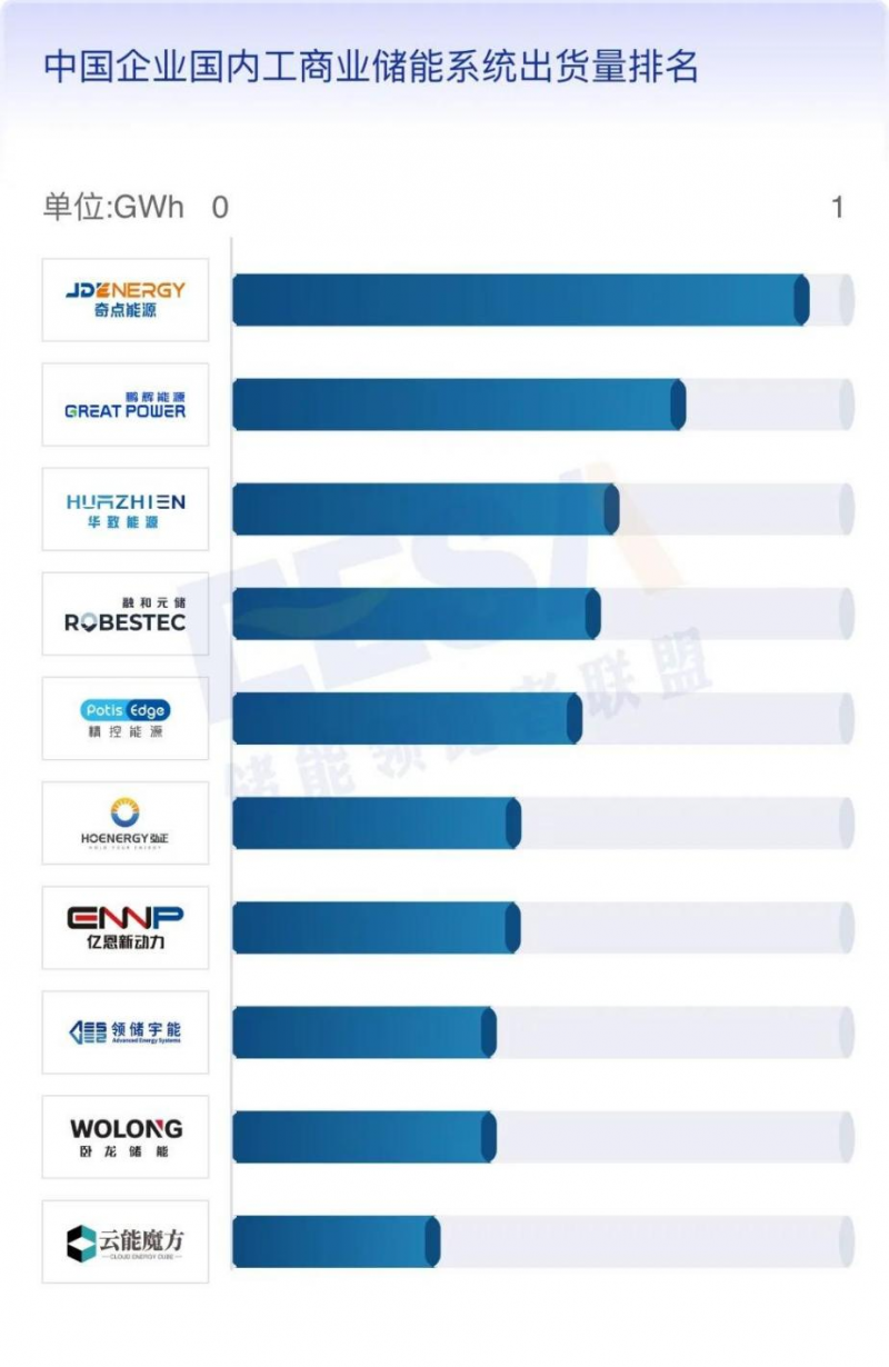 2024年度,在中國企業國內工商業儲能系統出貨量排名中,出貨量排名前十的中國儲能企業依次為:奇點能源、鵬輝能源、華致能源、融和元儲、精控能源、弘正儲能、億恩新動力、領儲宇能、臥龍儲能、云能魔方。