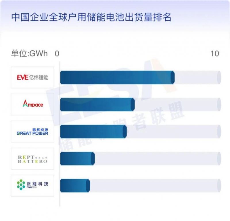 2024年度,在中國企業全球戶用儲能電池出貨量排名中,出貨量排名前五的中國儲能企業依次為:億緯鋰能、新能安、鵬輝能源、瑞浦蘭鈞、派能科技。
