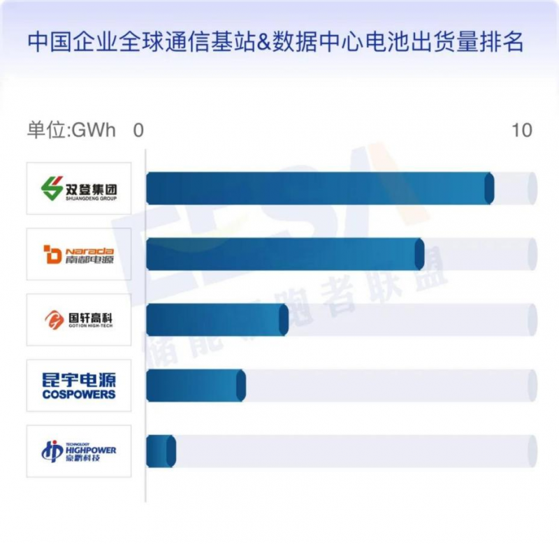 9、中國企業全球通信基站&數據中心電池出貨量排名