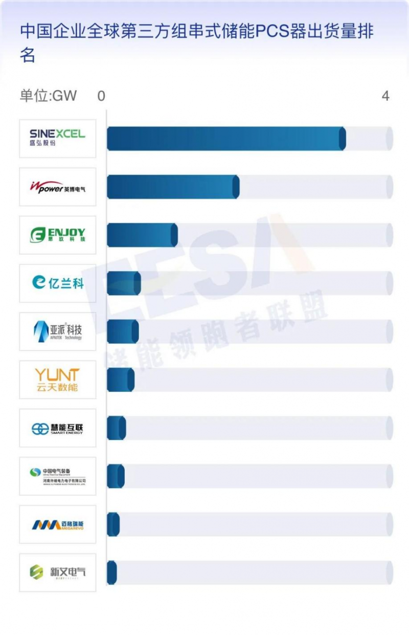 12、中國企業全球第三方組串式儲能PCS出貨量排名