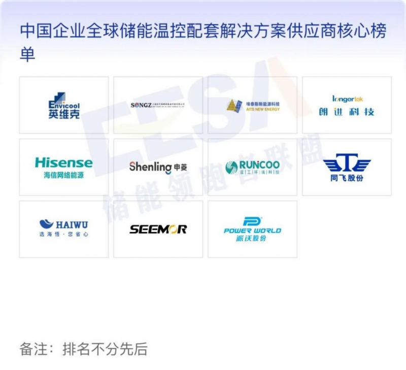 15、中國企業全球儲能溫控配套解決方案供應商核心榜單